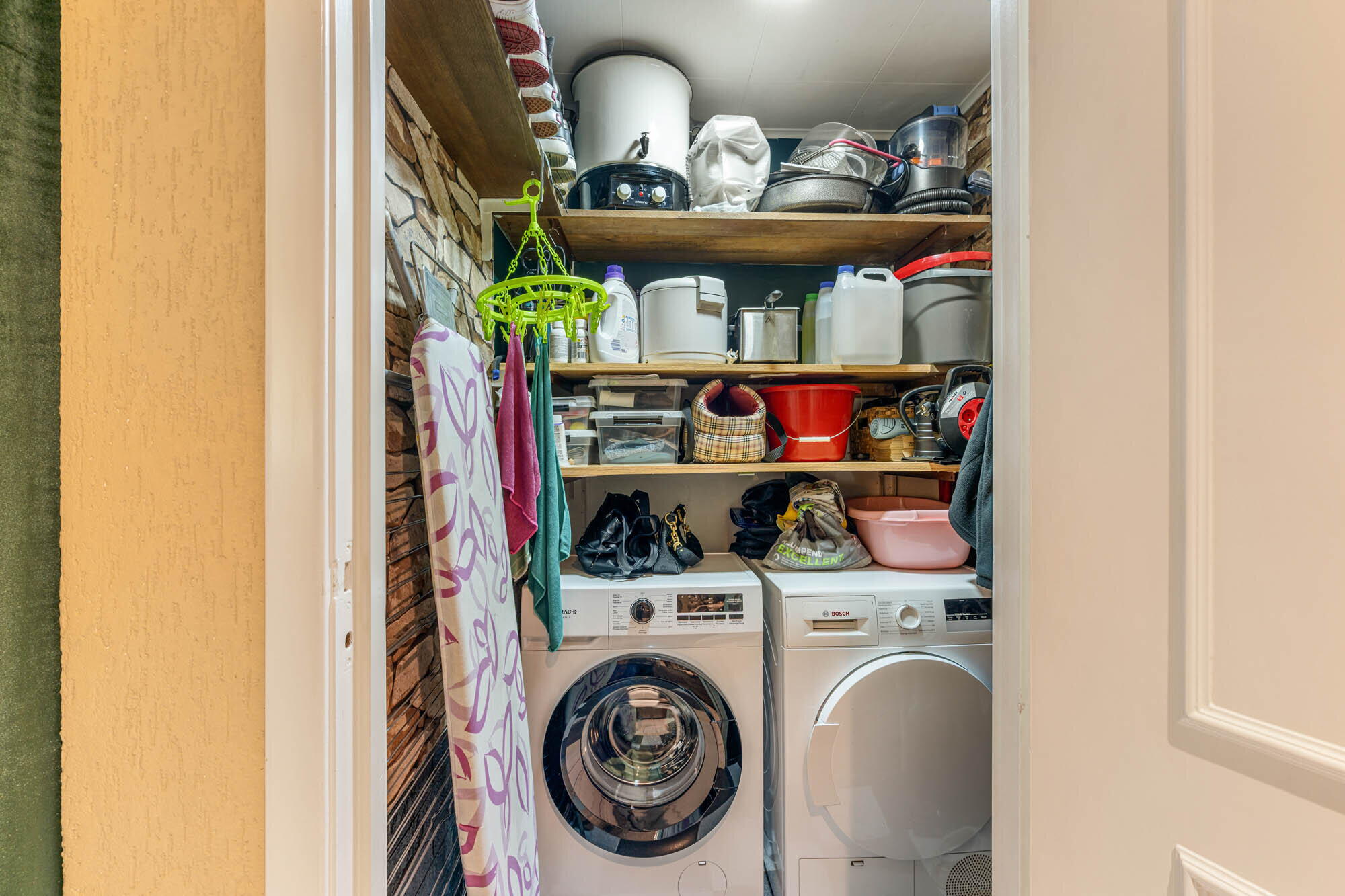 - Praktische berging met wasmachineaansluiting;