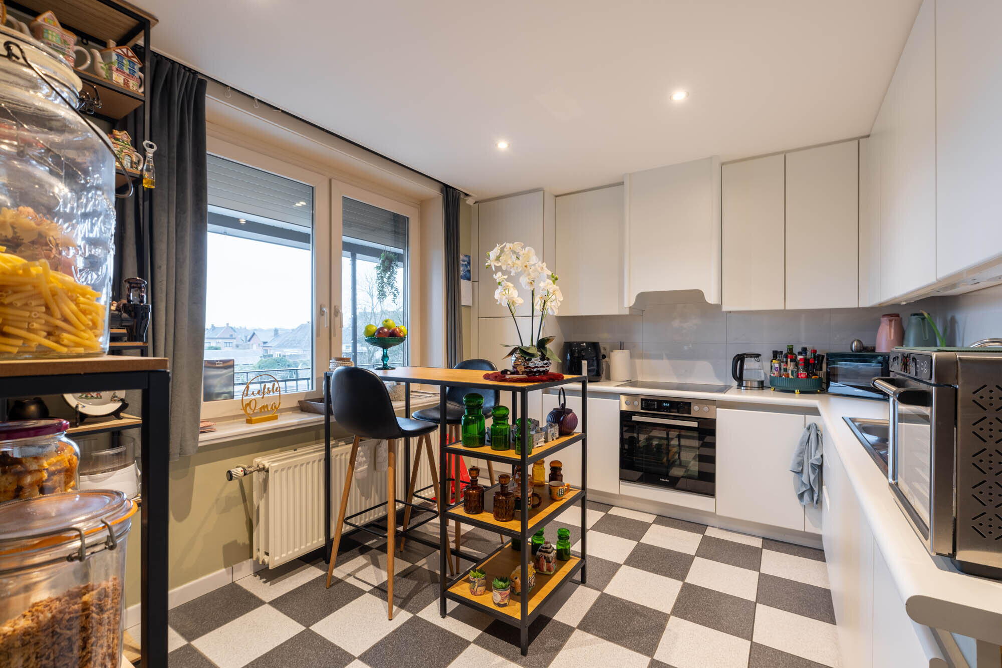 - Het volledig appartement is voorzien van manuele rolluiken, behalve in de leefruimte.
